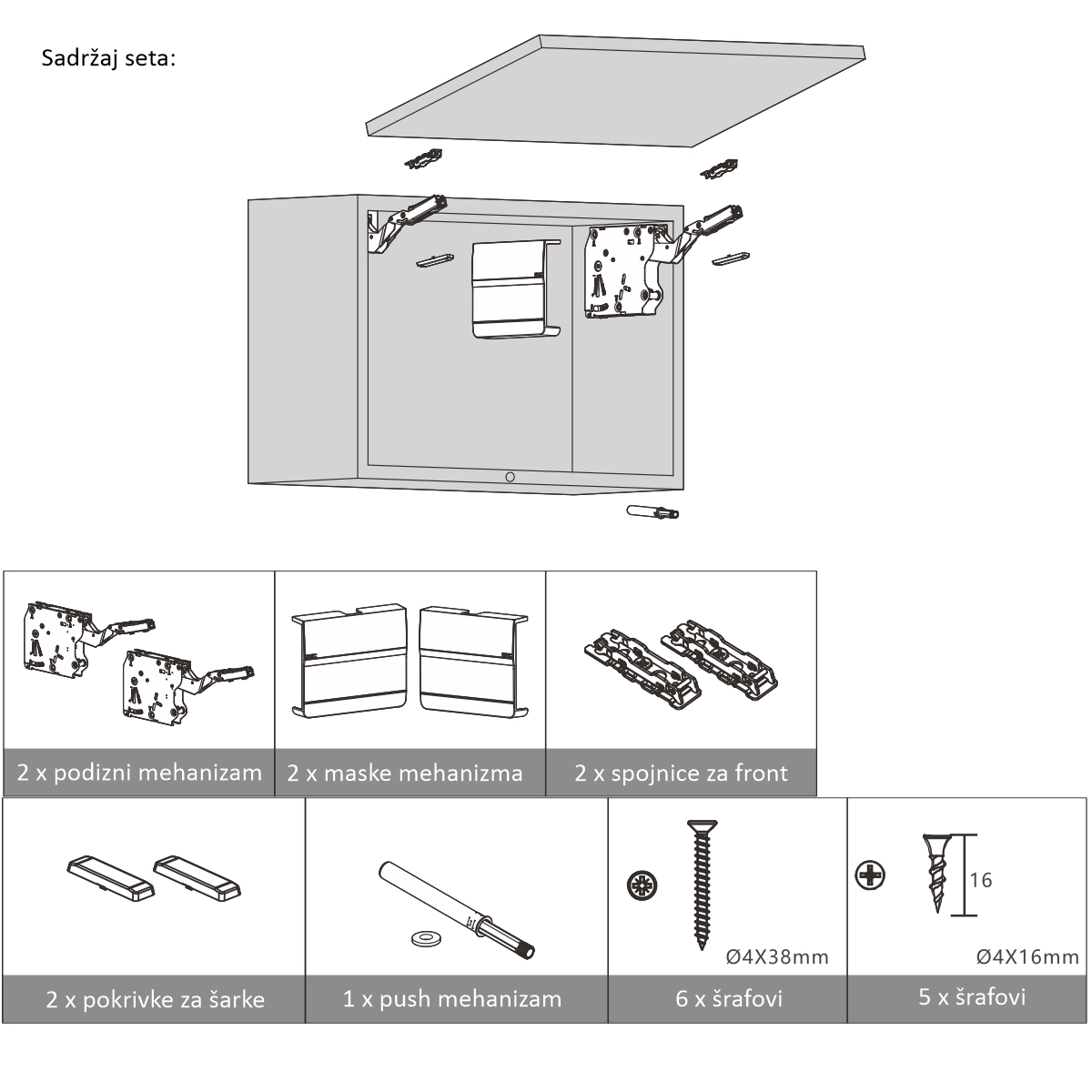 U kutiji se nalazi i šablon za montažu.