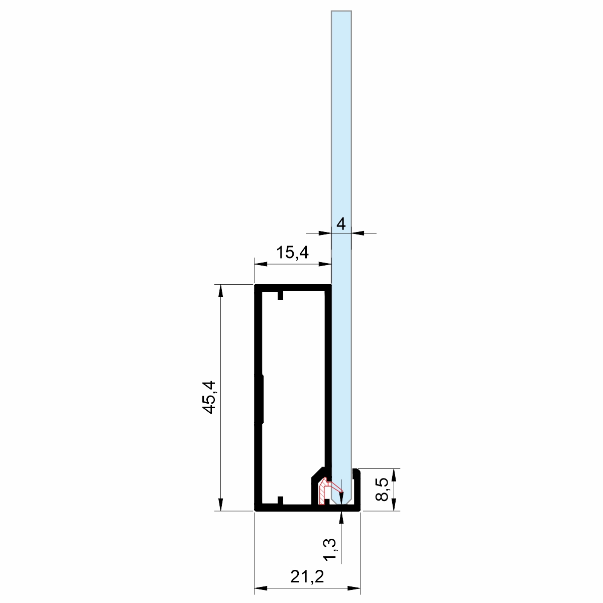 Eloksirani aluminijumski profil za izradu fronta sa staklenom ispunom.