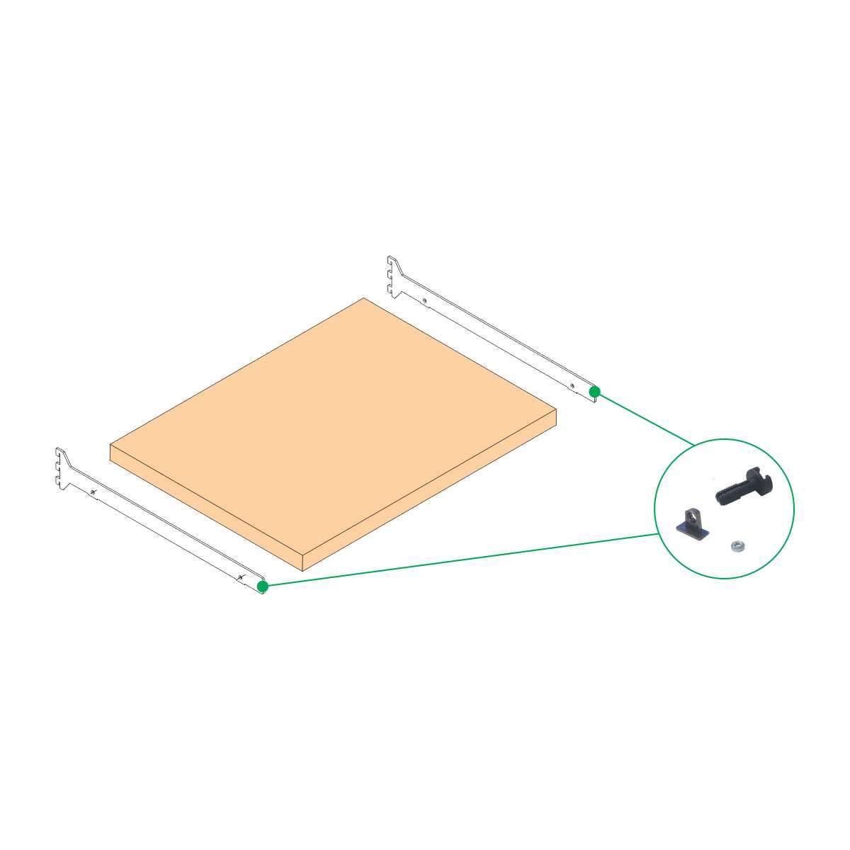 WI set za montažu police - Bočni Set se koristi za izradu polica u otvorenom garderoberu uz ravni i kosi nosač.