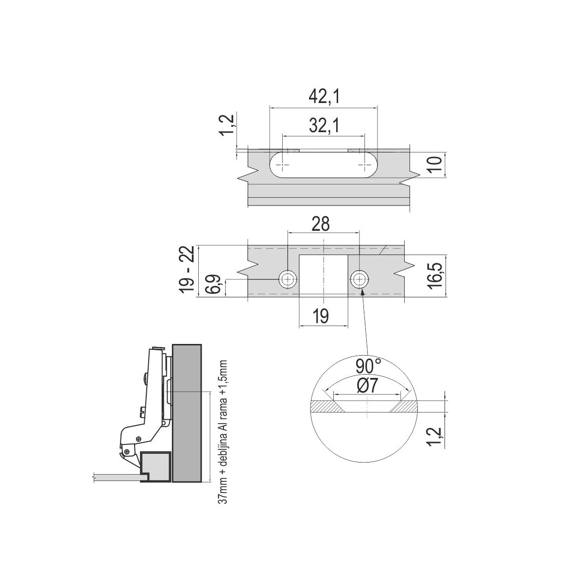 Šarka se koristi za montažu 1007 aluminijumskog fronta na korpus.