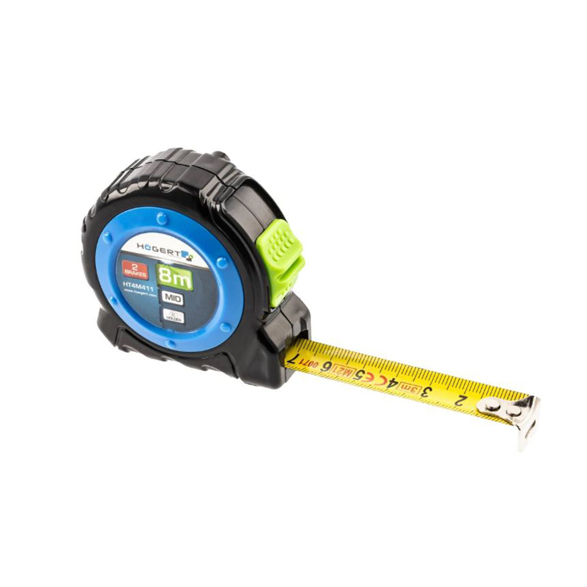 Metar je izrađen od fleksibilne čelične trake 25mm širine, na samom metru sa nalazi šnala za kaiš, kao i dve kočnice koje zaustavljaju metar na željenoj dužini.