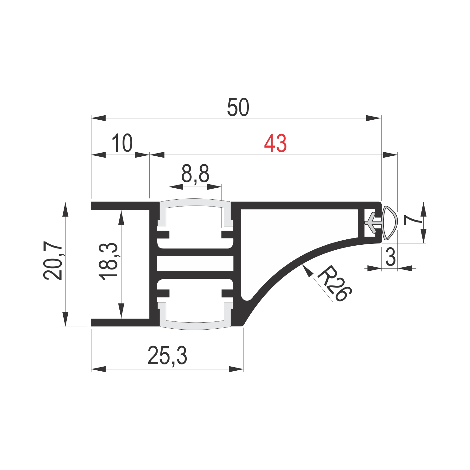 Prilikom montaže EP 1069 ručice, potrebno je umanjiti dno (pod) korpusa na koji se profil montira.