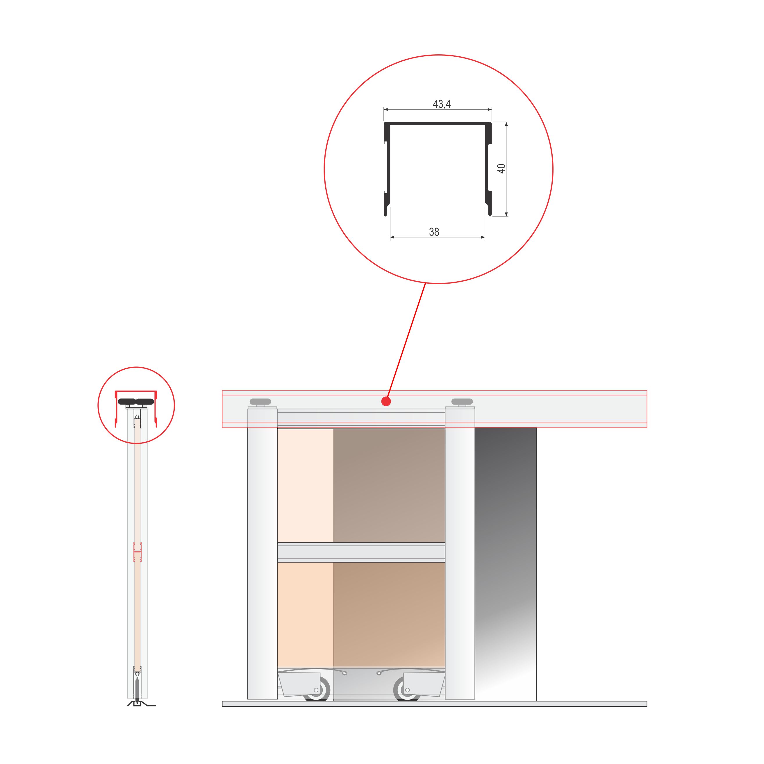 Al gornja jednokanalna šina koristi se prilikom izrade kliznih plakarskih vrata ili pregradnih kliznih vrata.