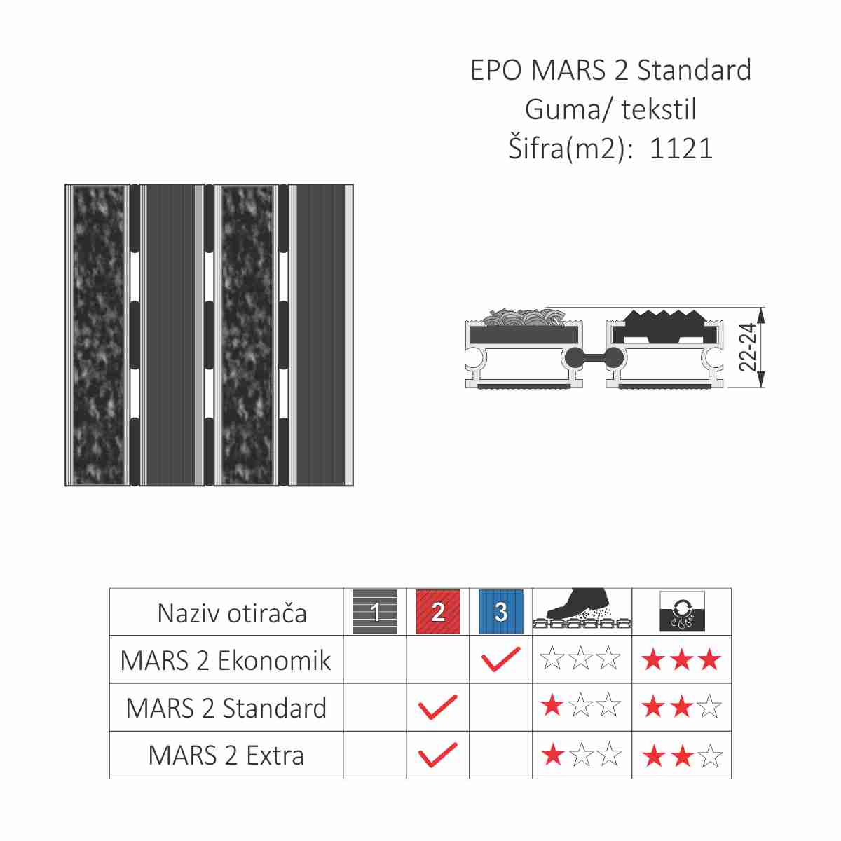 Otirač Mars Standard 2 može biti ugradni ili nadgradni.