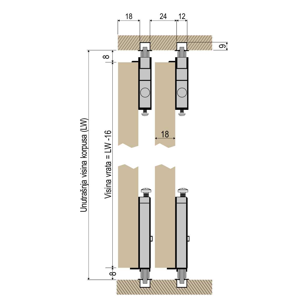 Aluminijumska ukapovajuća šina se koristi uz FST klizni mehanizam za izradu drvenih plakarksih vrata.