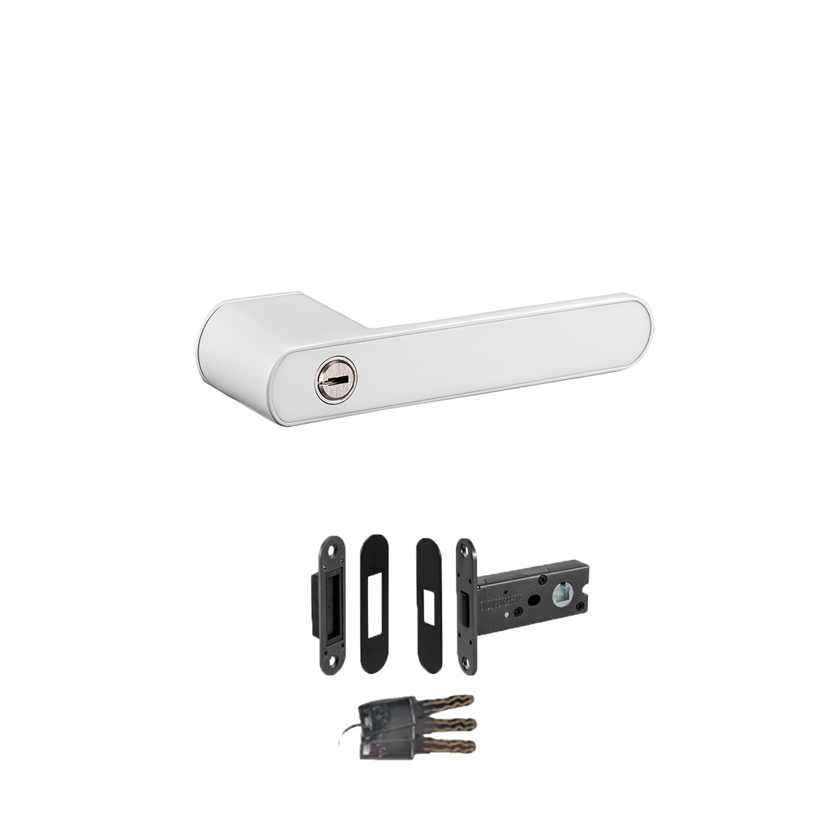 U setu se nalazi par kvaka sa magnetnom bravom, uloškom i prihvatnikom za magnetnu bravu i 3 ključa za cilindar.