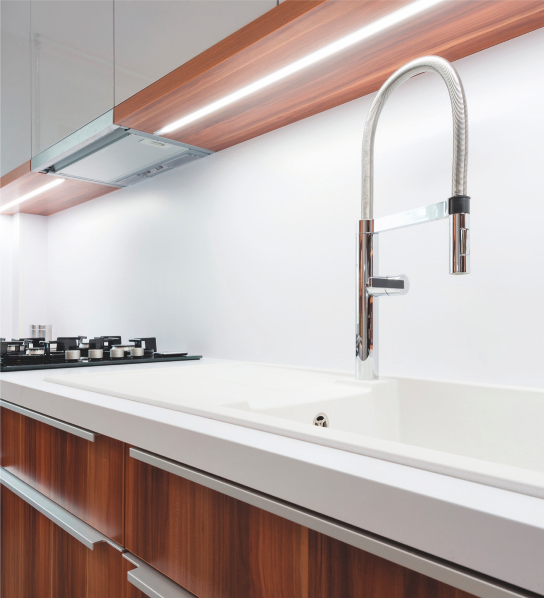 Ugaoni Al profil se koristi prilikom izrade nameštaja od pločastog materijala kako bi se postigli funkcionalni i estetski svetlosni efekti.
