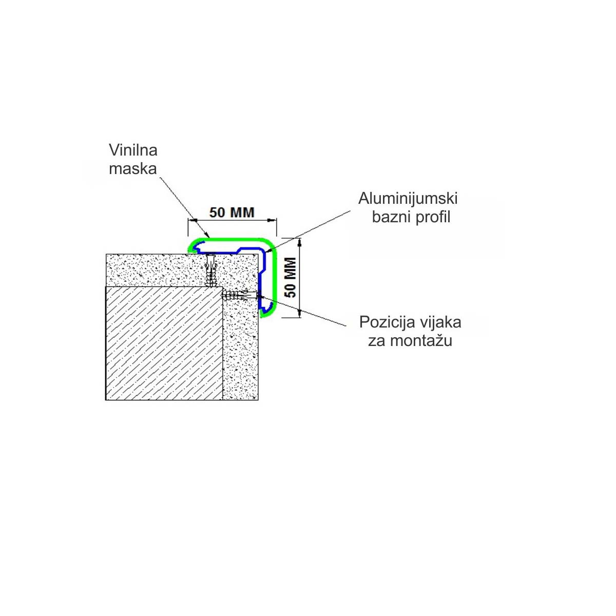 Profil za zaštitu ivice zida CG 50 Profil CG 50 se koristi za zaštitu ivica zida.