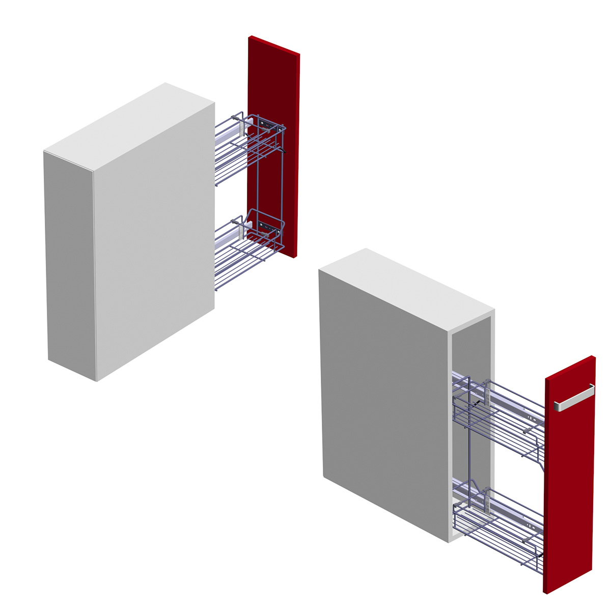 Bočna fioka SLOW MOTION se sastoji od dve žičane korpe koje se zajedno izvlače iz kuhinjskog elementa.