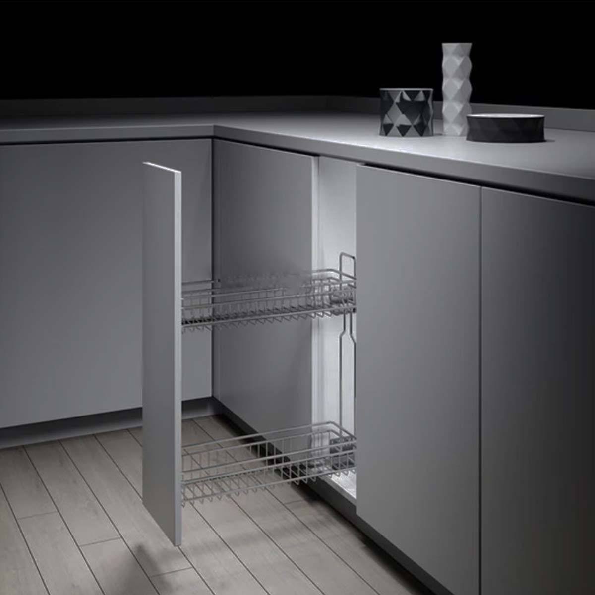 U setu se nalaze i skriveni klizači sa integrisanim usporivačima, kao i prihvatnici za montažu drvenog fronta.