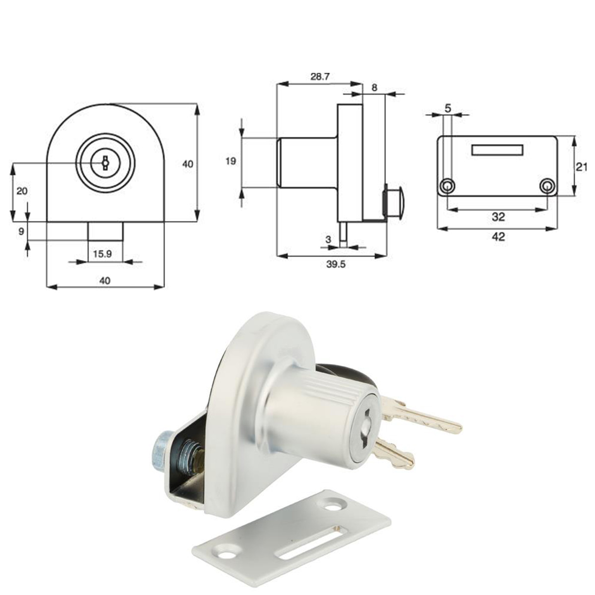U setu sa bravicom dolaze dva ključa (isti ključ za sve bravice) i metalni prihvatnik za jedna vrata.