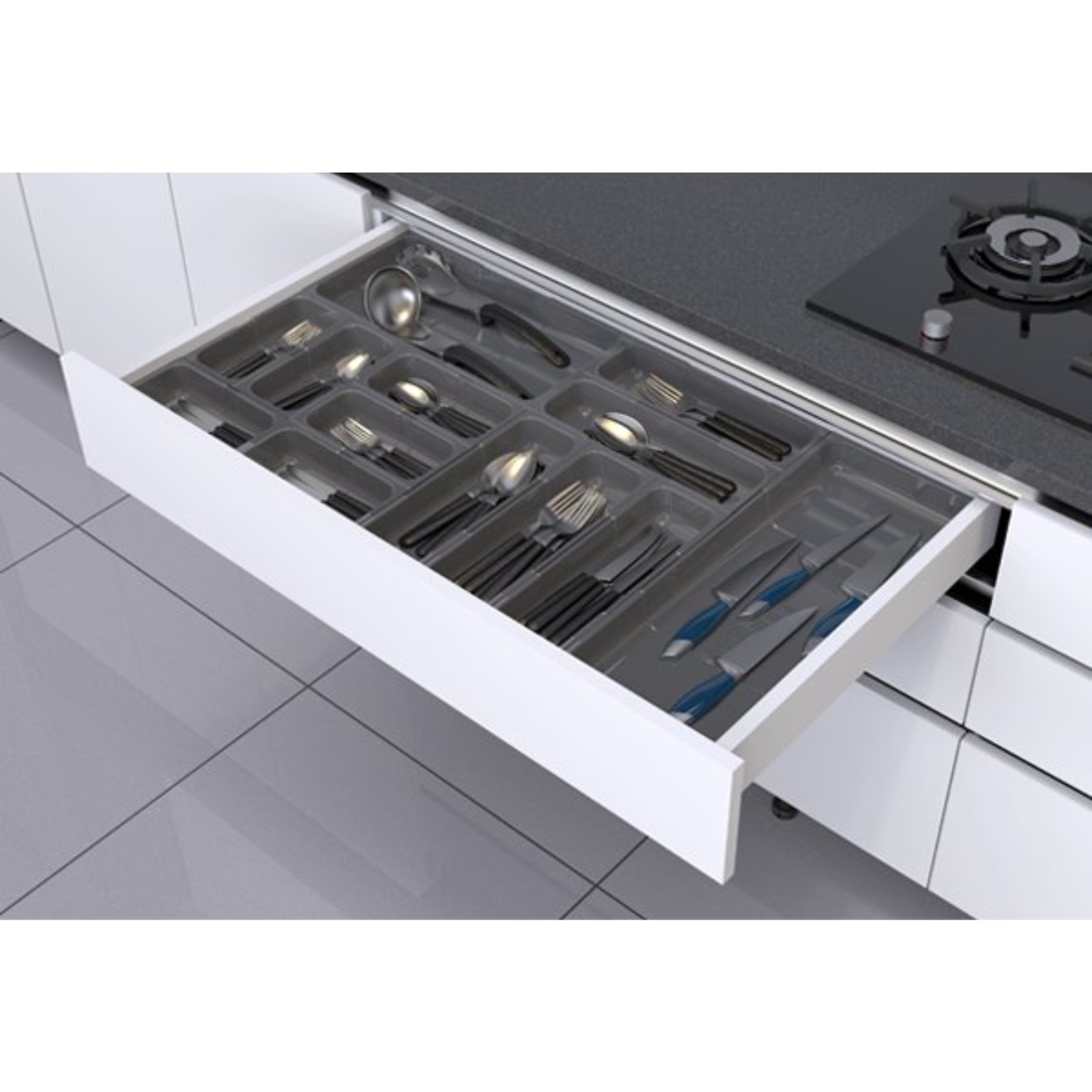 Modularni uložak za escajg "Freetray" - 300-500mm PVC uložak je namenjen za organizovanje unutrašnjosti fioke. Na bočnim stranicama uloška se nalaze krilca koja omogućavaju medjusobno povezivanje više uložaka, kako bi se maksimalno iskoristila fioka u koju se postavljaju. Širina PVC uloška: 210mm Dužina uloška: 300-500mm Boja: Antracit siva *Cena se odnosi na komad artikla Pogledajte i video prezentaciju Freetray modularnih uložaka za fioke