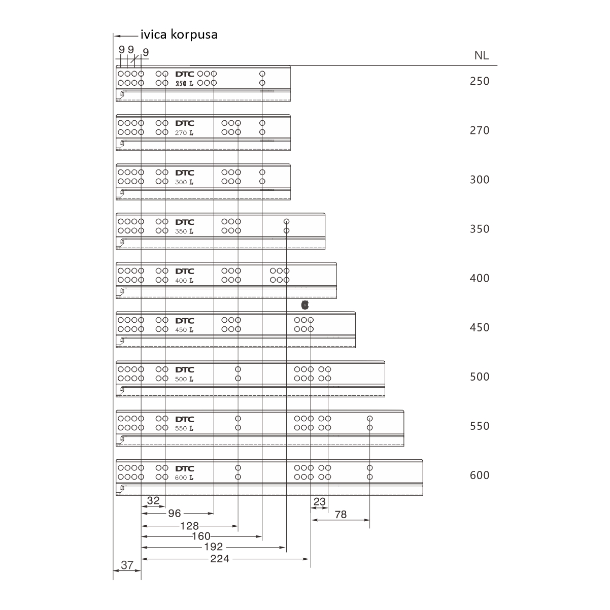 Dužina klizača: 450mm