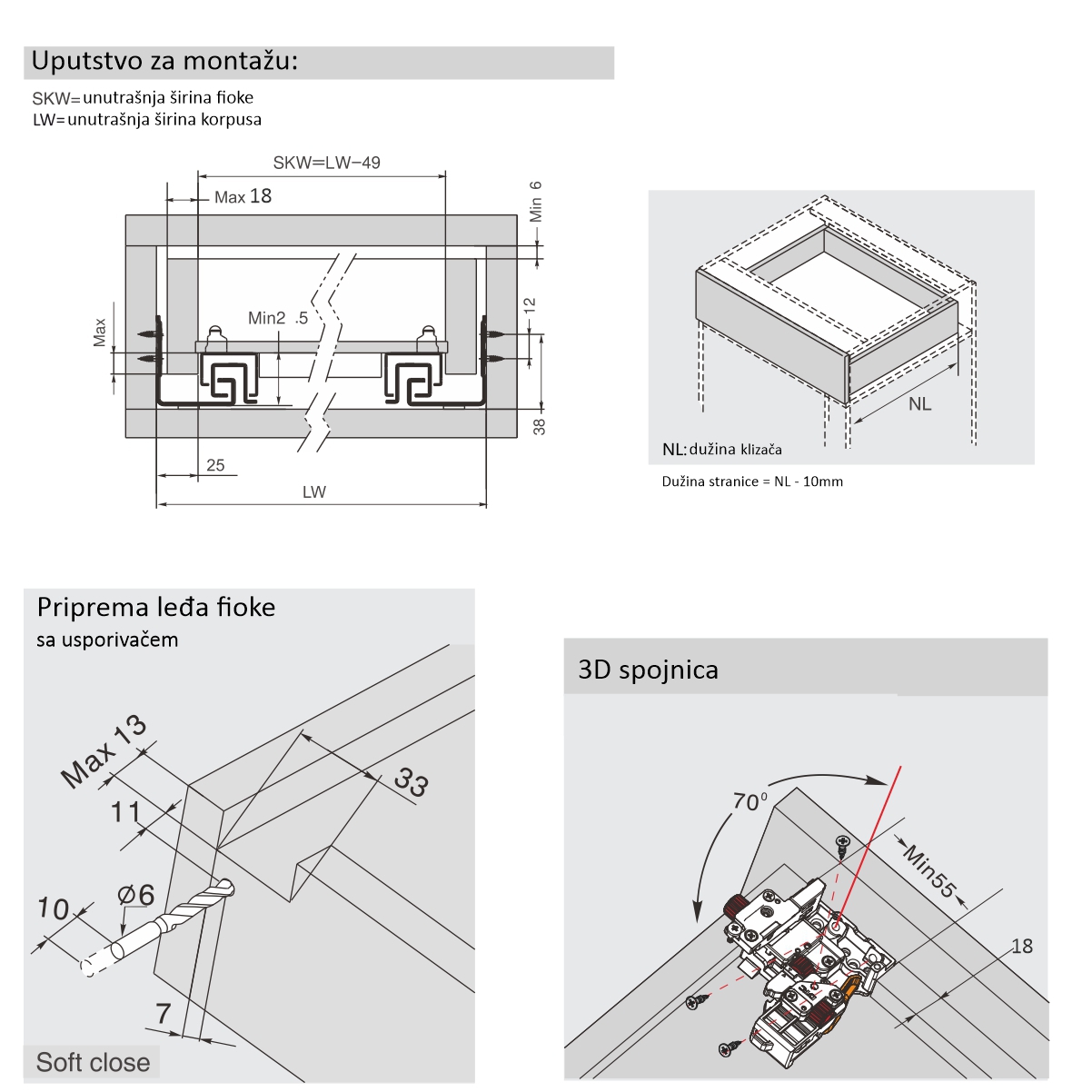 Skriveni (podgradni) sistem klizača nosivosti 35kg.