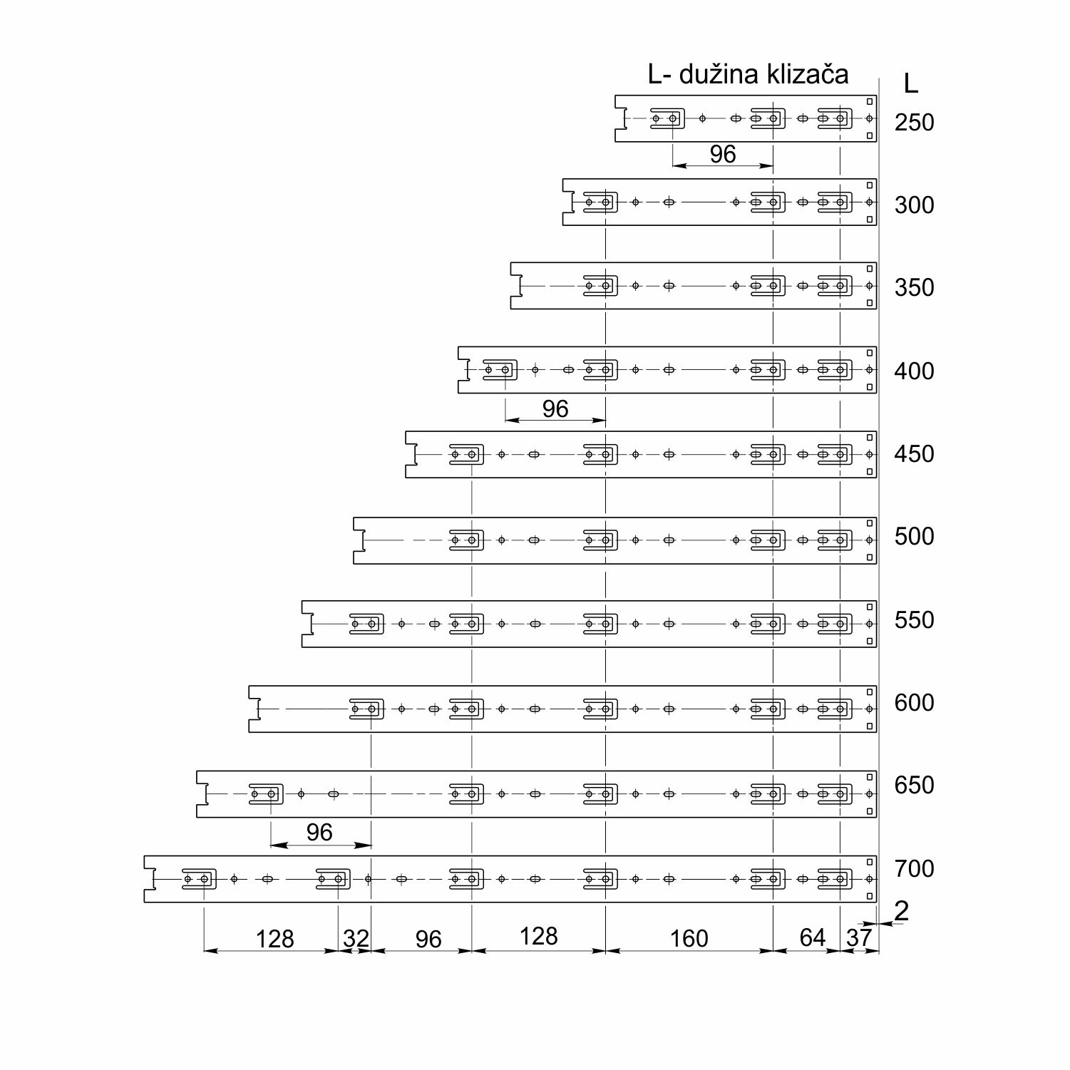 Dostupne dužine klizača (mm)