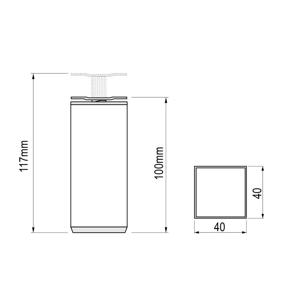 ALU nogica 40x40mm L=10cm - brušena bronza mat