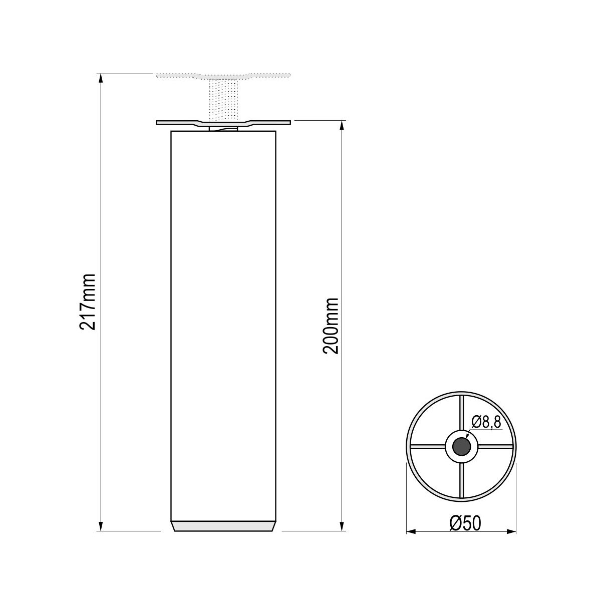 ALU nogica Ø=50mm L=20cm - sjaj srebro