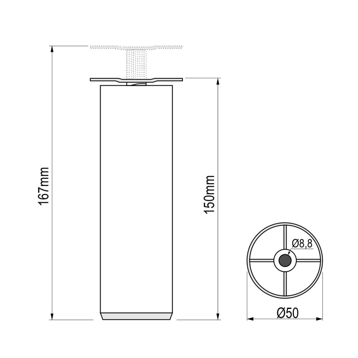 ALU nogica Ø=50mm L=15cm - sjaj srebro