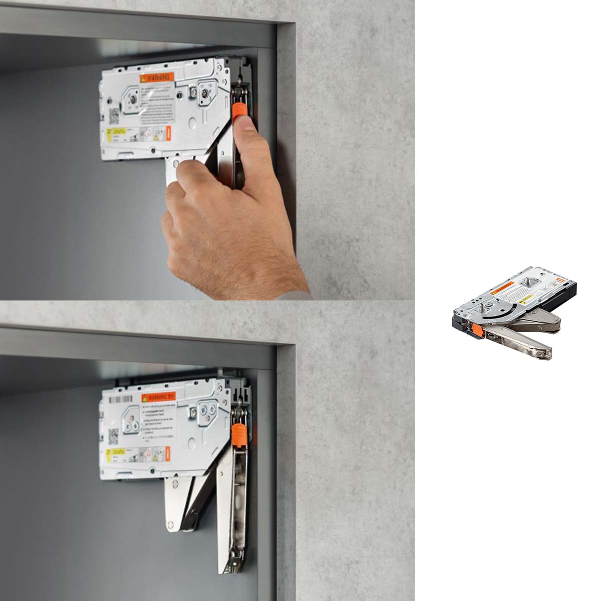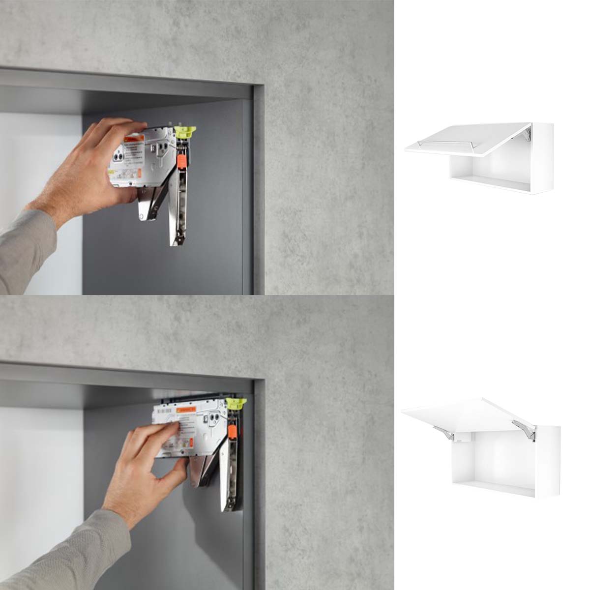 Bez obzira na to da li su u pitanju vrata, front koji se preklapa nagore ili sistem izvlačenja: nameštaj bez ručki se otvara jednostavnim dodirom. Za zatvaranje je dovoljno da se front lagano pritisne. TIP-ON mehanizam ostaje u potpunosti funkcionalan i kada se vrata, preklopni frontovi ili elementi na izvlačenje nekada otvore ručno.