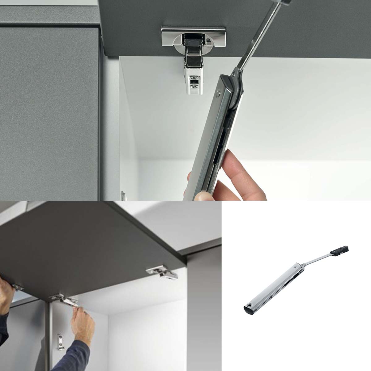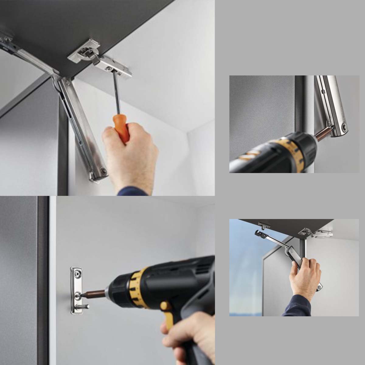Komponente HK-XS mehanizma se montiraju praktično bez alata. Kada se opružni mehanizam podesi na težinu i veličinu fronta, otvaranje, zatvaranje i zaustavljanje malog fronta koji se preklapa nagore je uvek pouzdano. U kombinaciji sa Blumovim šarkama, CLIP top zatvaranje malog fronta koji se preklapa nagore je lako i tiho.