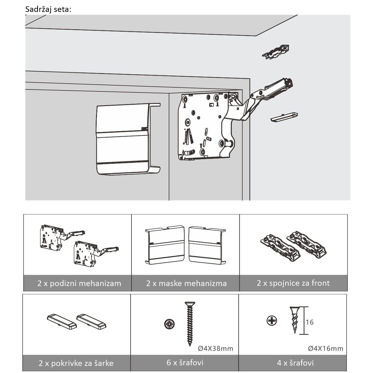 U kutiji se nalazi i šablon za montažu.