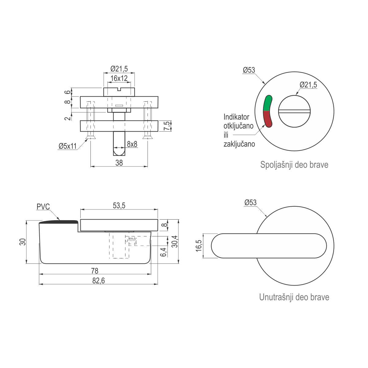 INOX brava Ø63 sa indikatorom, namenjena je za izradu vrata za toalet kabine.