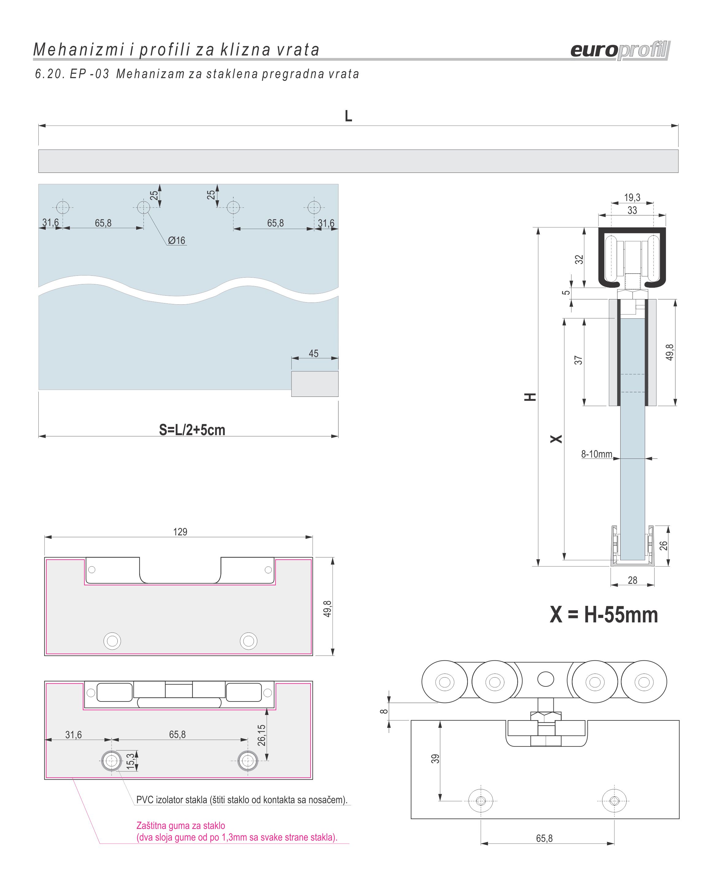 EP-03 metalni mehanizam za staklena pregradna vrata