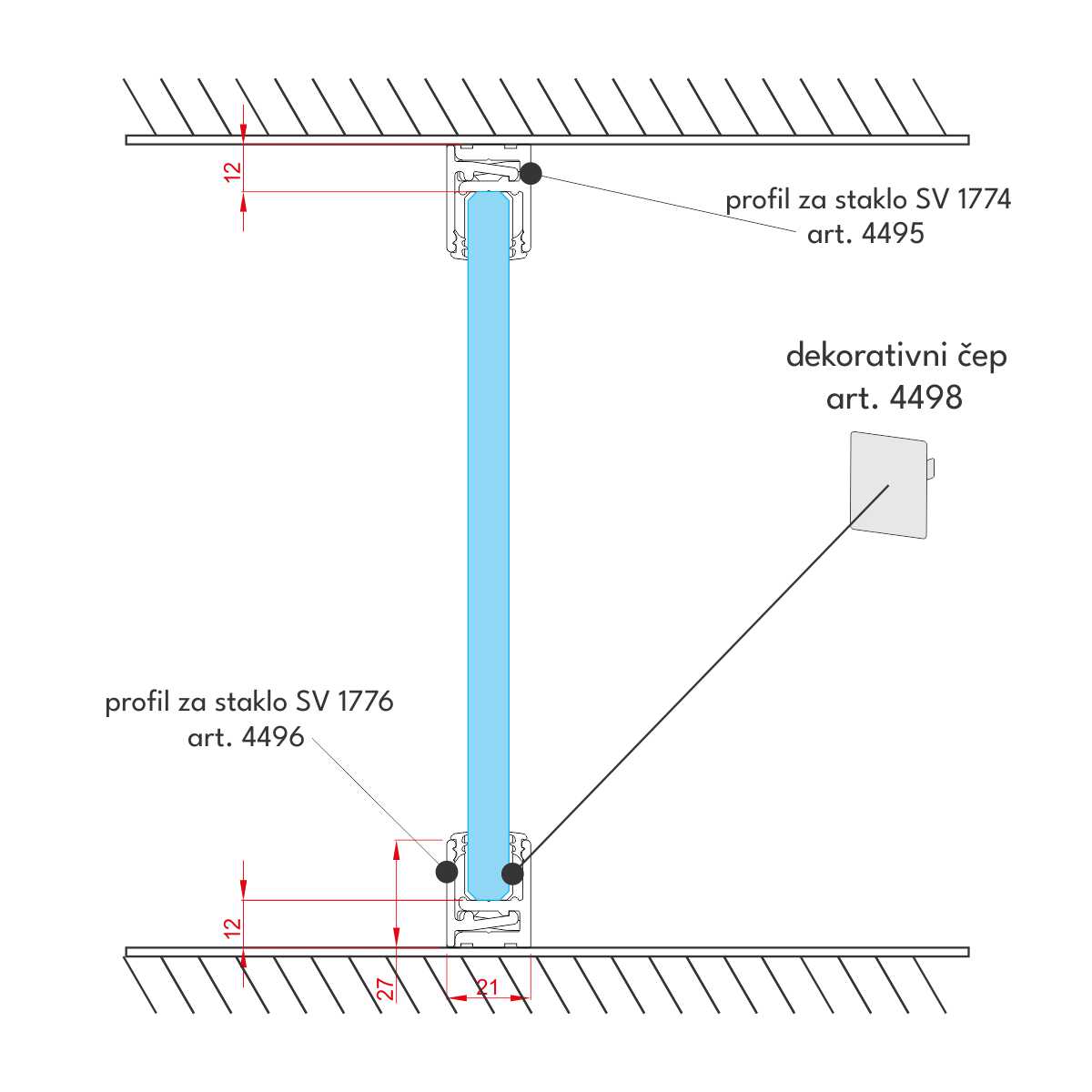 "Klik" profil za fiksne staklene panele - SV 1776
