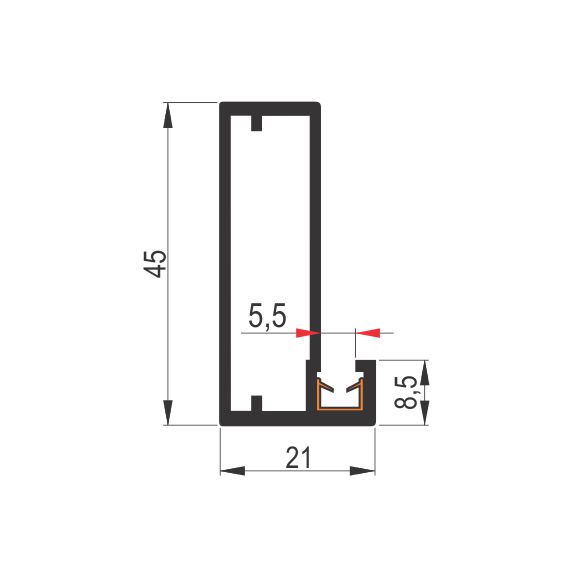 RAM 1002 A sjaj srebro brušeno je aluminijumski profil za izradu fronta od stakla debljine 4mm.