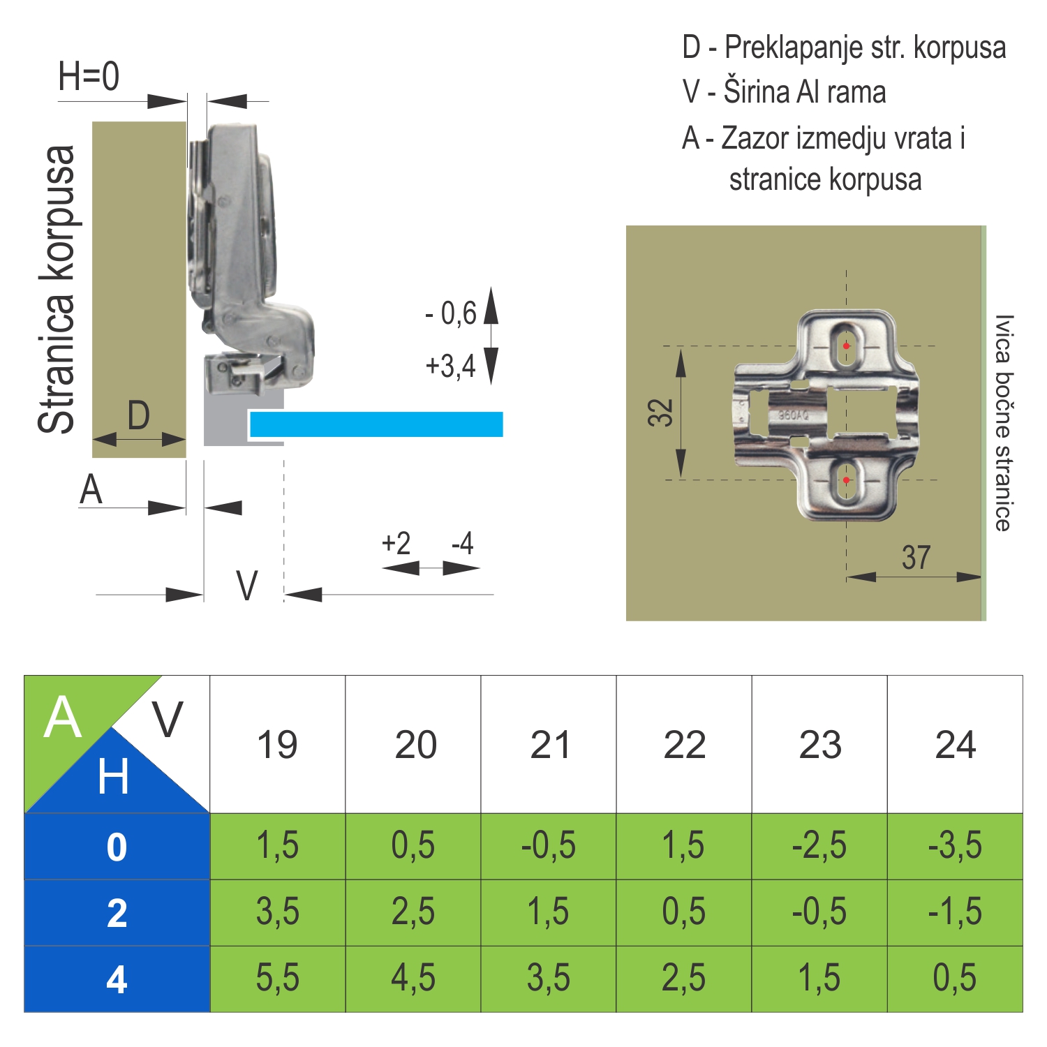 Osno rastojanje rupa za pozicioniranje šarke u ramu je 28mm.