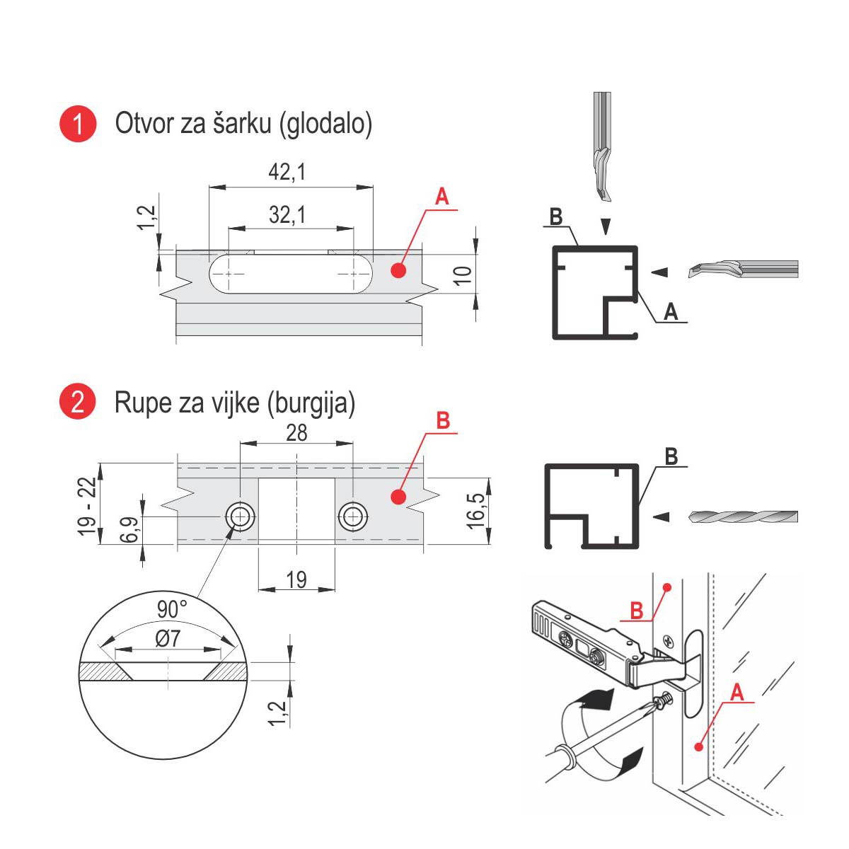 Kod izrade Al rama, dimenzija stakla umanjuje se za 26mm od ukupne dimenzije rama.