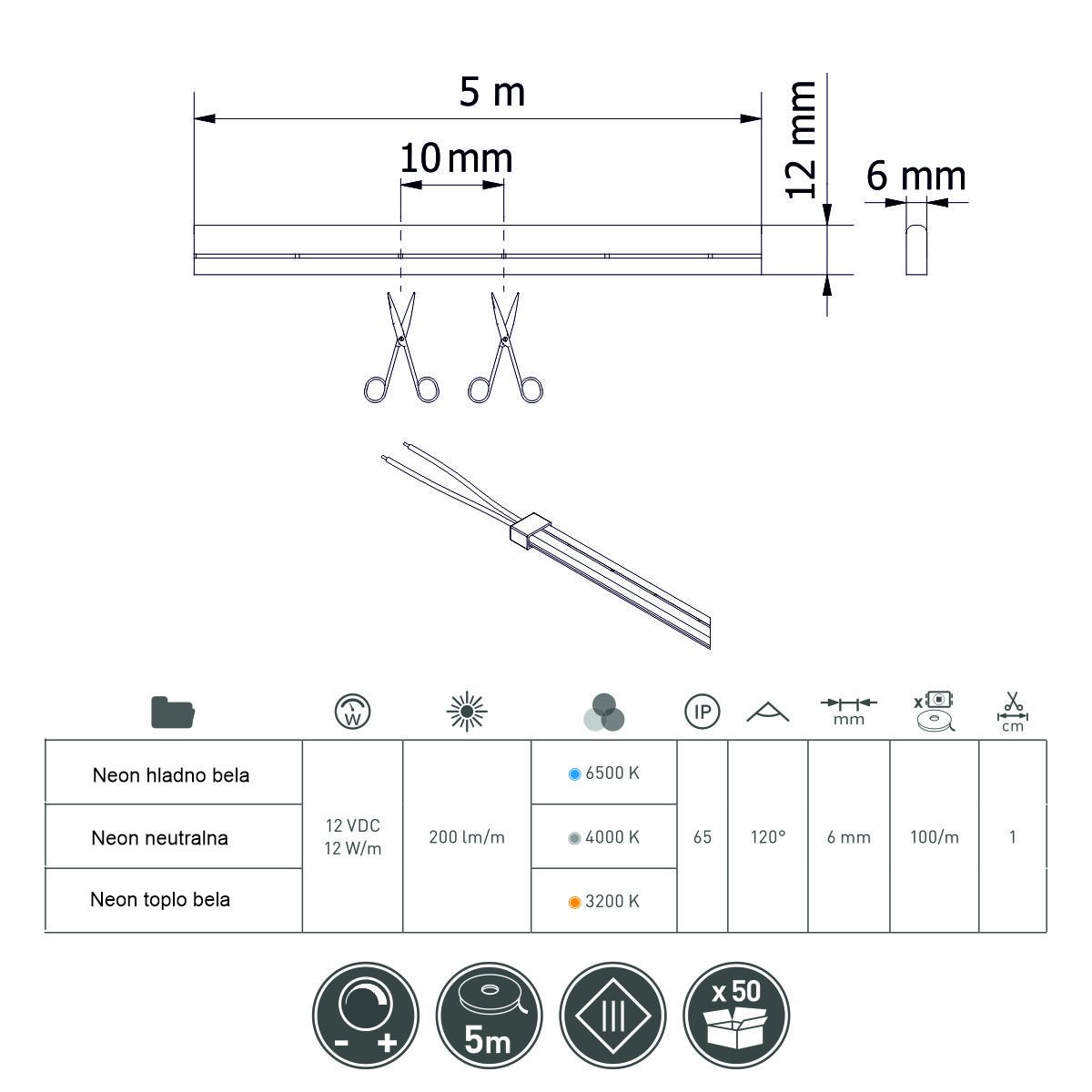 RAS LED traka NEON W hladno bela 5m GTV