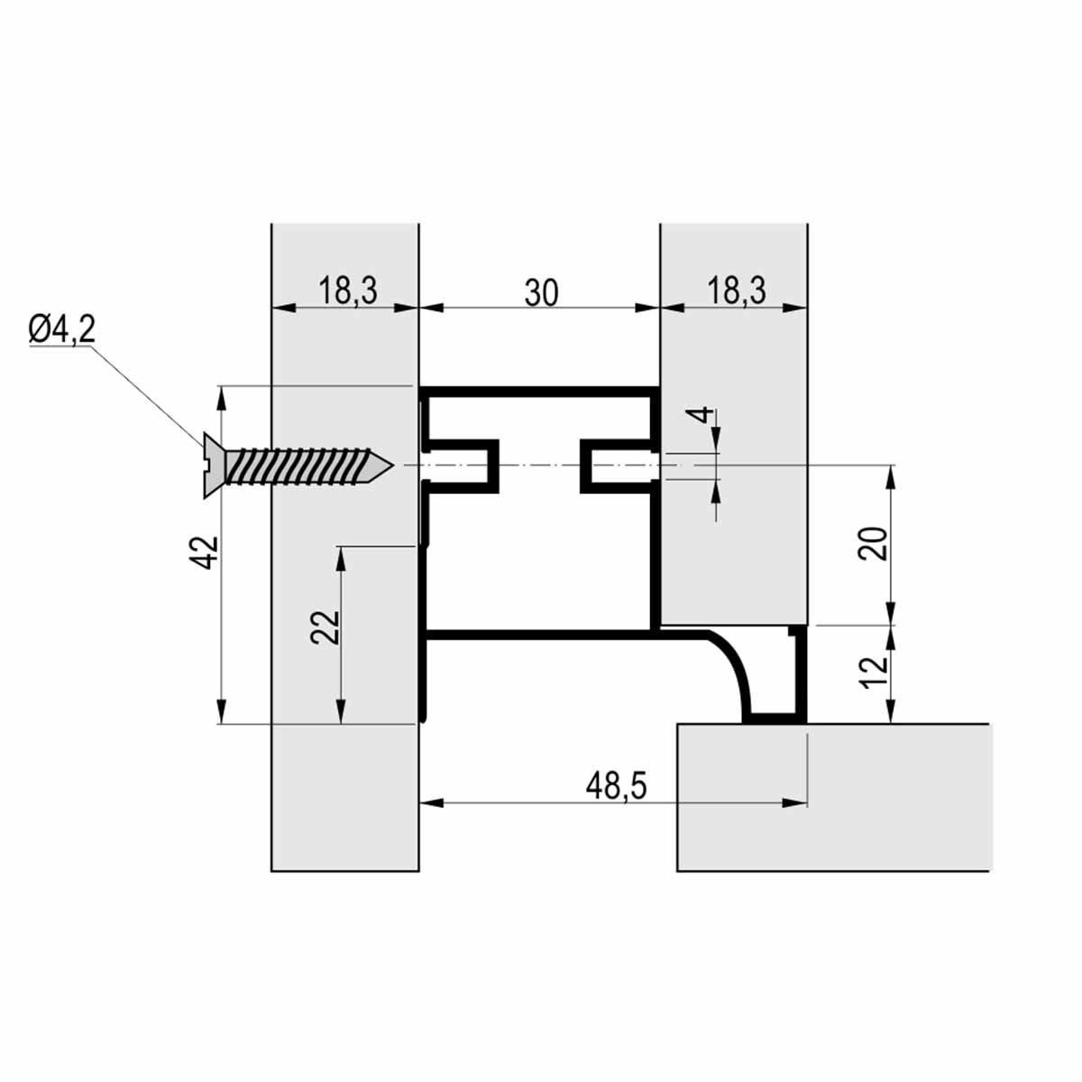 GL 027 aluminijumski profil se koristi kao vertikalna skrivena ručica prilikom izrade nameštaja od pločastog materijala.