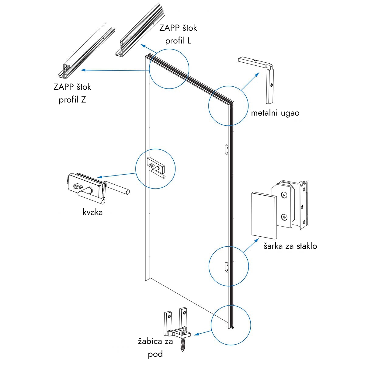 Matalni ugao za spajanje aluminijumskih profila za izradu al štokova bez pervajza za staklena vrata.