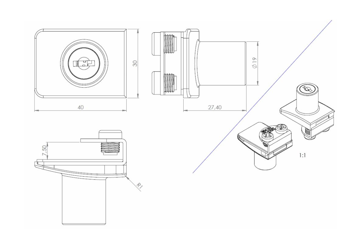 Prodaje se kao set u kojem se nalaze: bravica, prihvatnik bravice i dva *"Key Alike" ključa.