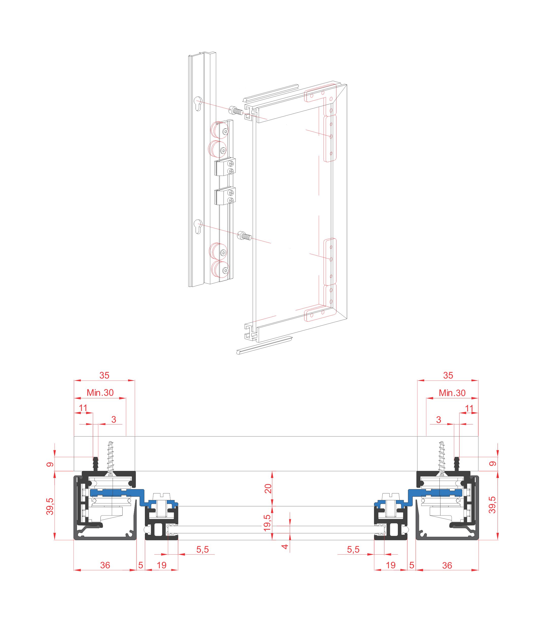 Diht guma-ram BETA 380/460 za izradu kliznih staklenih vrata sa vertikalnim otvaranjem i zatvaranjem.