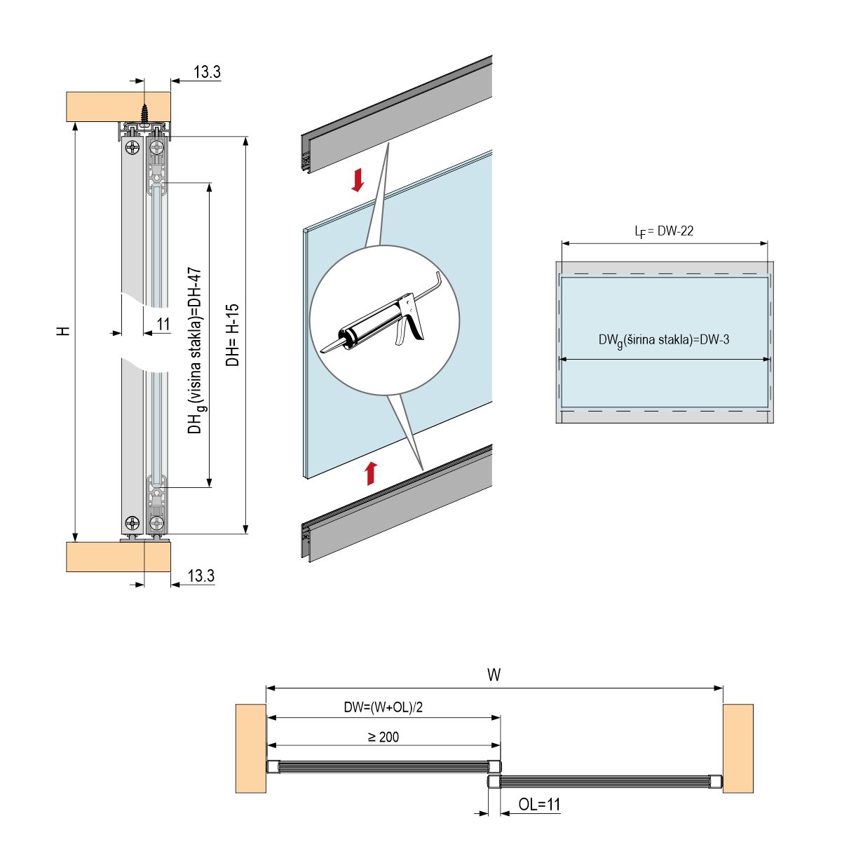 Sistemi za klizna plakarska vrata sa osloncem na gornju šinu - Šapa sistemi