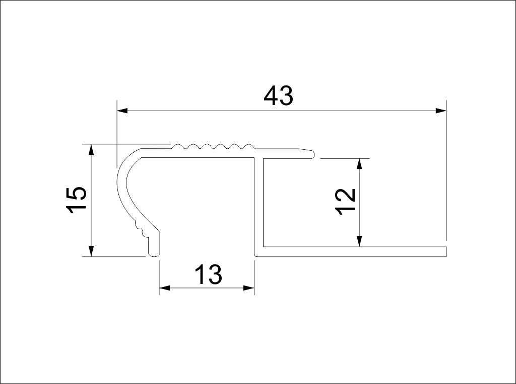 Profil je namenjen za keramičke obloge 12mm debljine i pokriva čeoni i gazišni deo stepenika.