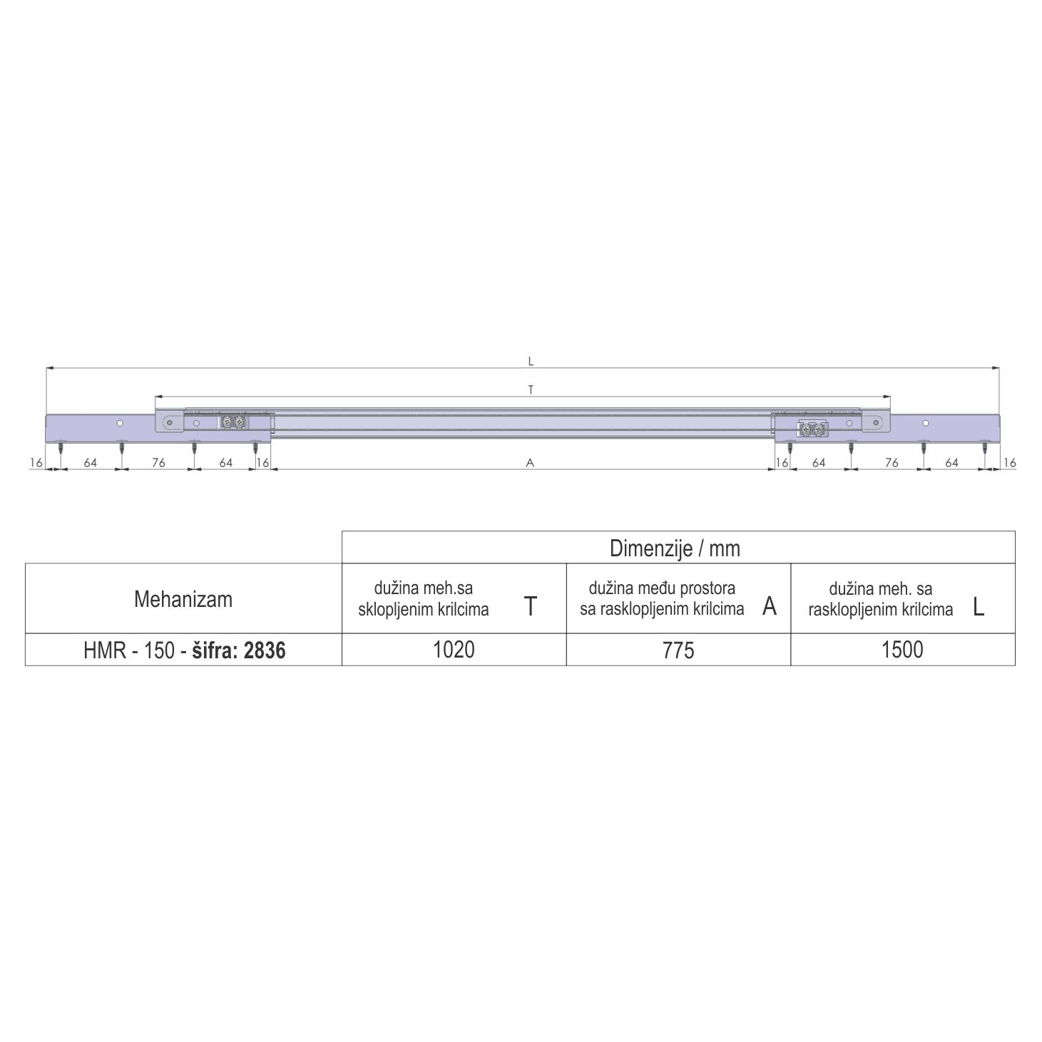 HMR 150 metalni mehanizam za sto na rasklapanje.