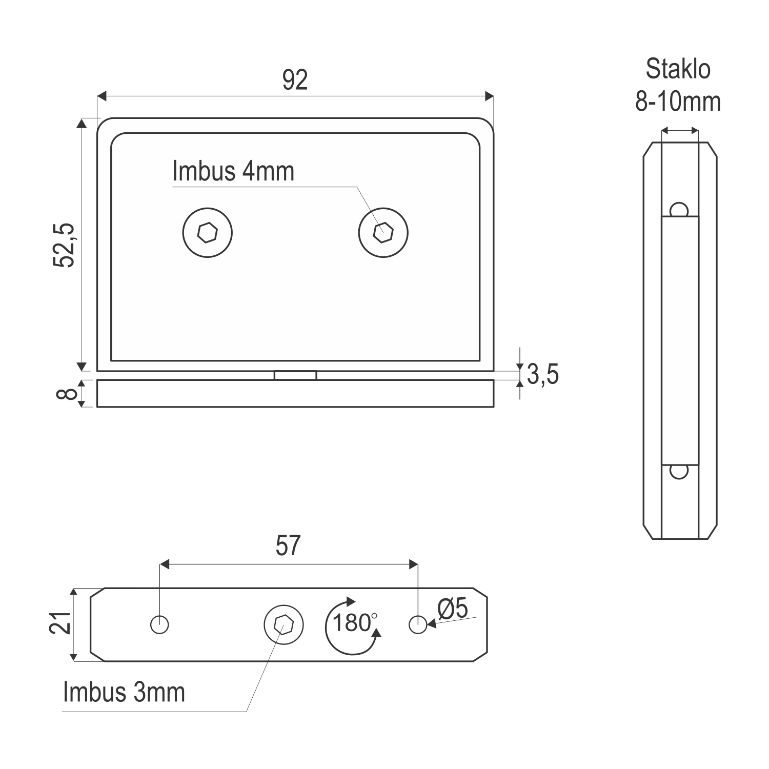 Namenjena je za debljinu stakla 8 i 10mm debljine i staklo se mora obraditi (useći) za montažu ove šarke.