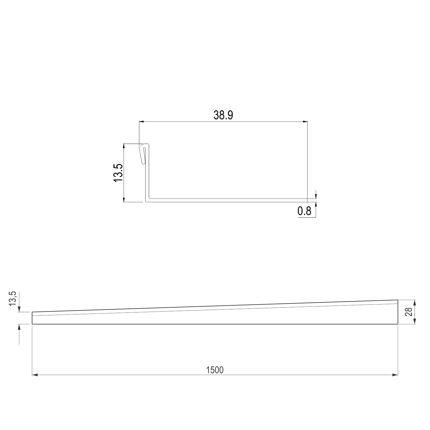 Visina profila se kreće od 13mm na jednom kraju do 28mm na drugom kraju profila.