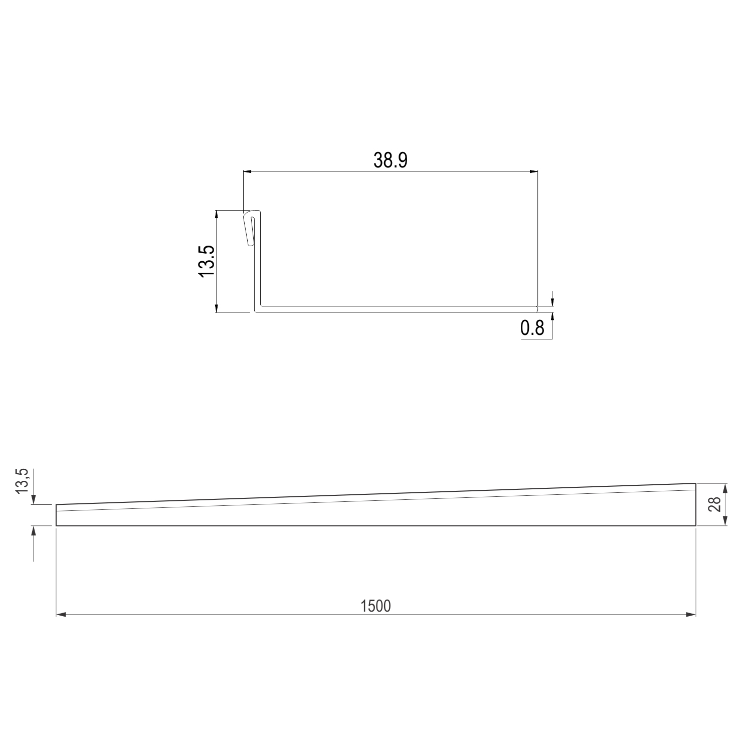 Visina profila se kreće od 13mm na jednom kraju do 28mm na drugom kraju profila.