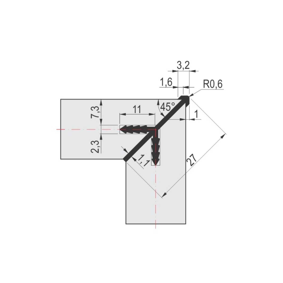 Vezni ger profil predviđen je za spoj dve iverice pod uglom od 90°.