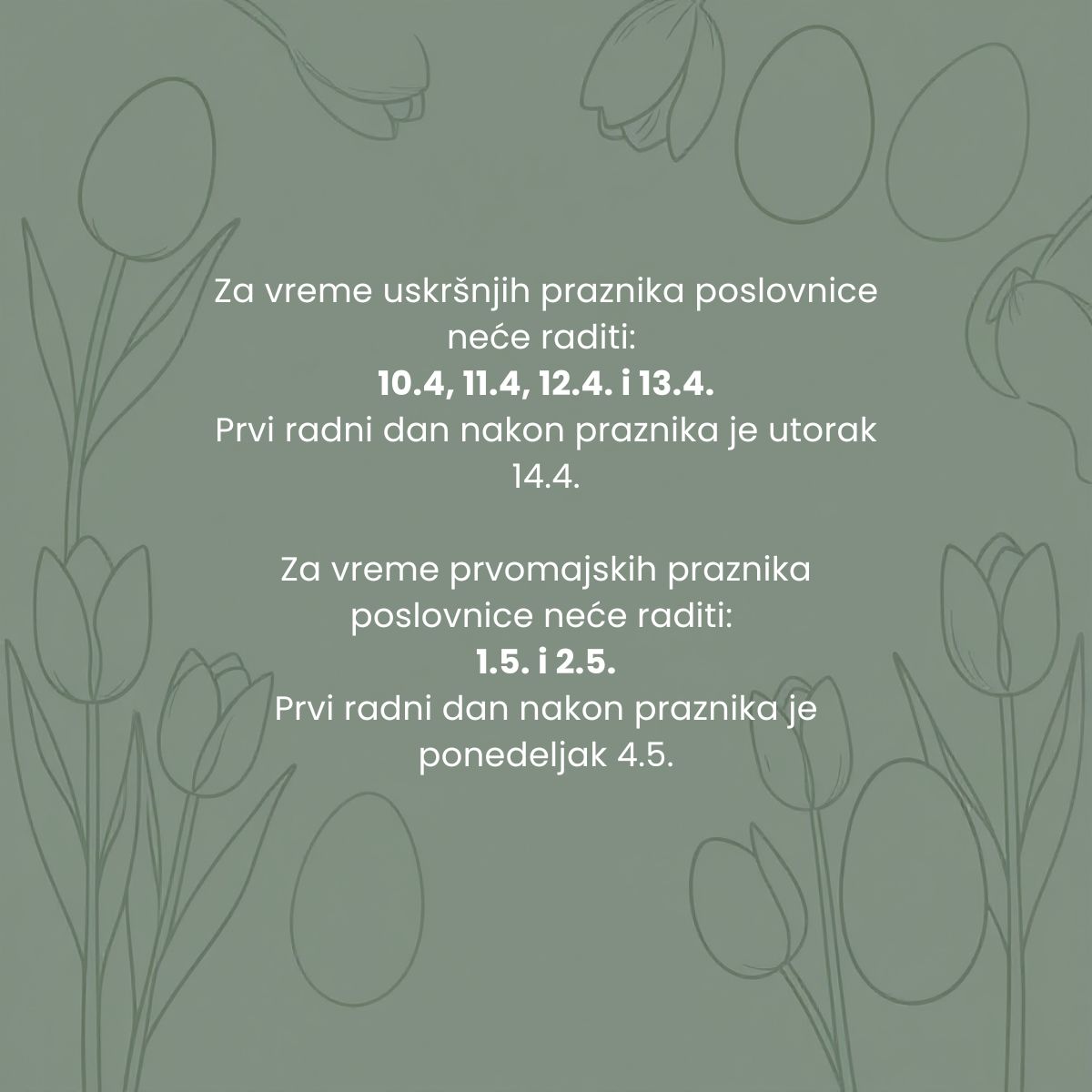 Za vreme uskršnjih praznika poslovnice neće raditi: