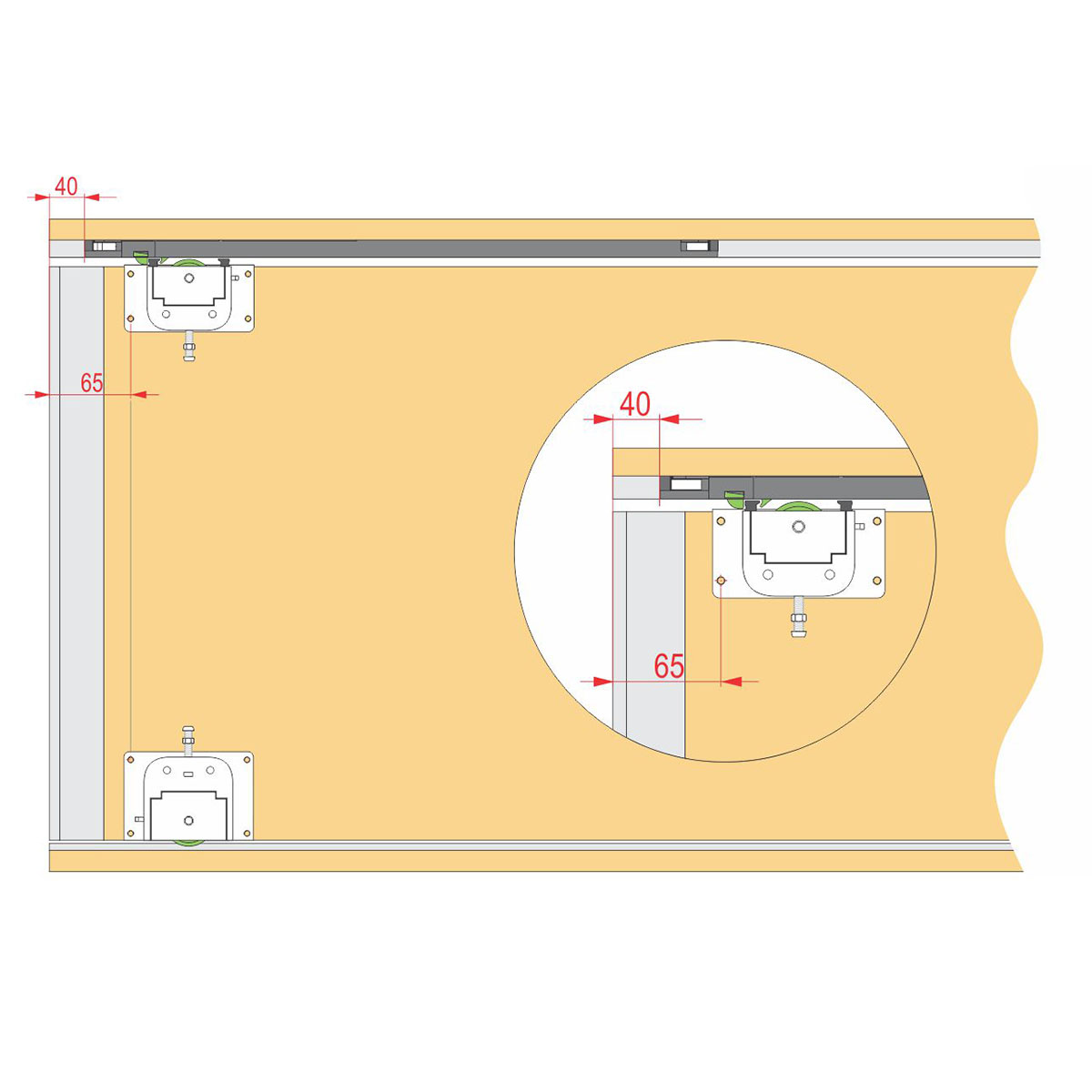 Metalni mehanizam EP-OP 16 koristi se kod izrade kliznih plakarskih vrata maksimalne nosivosti 50kg.