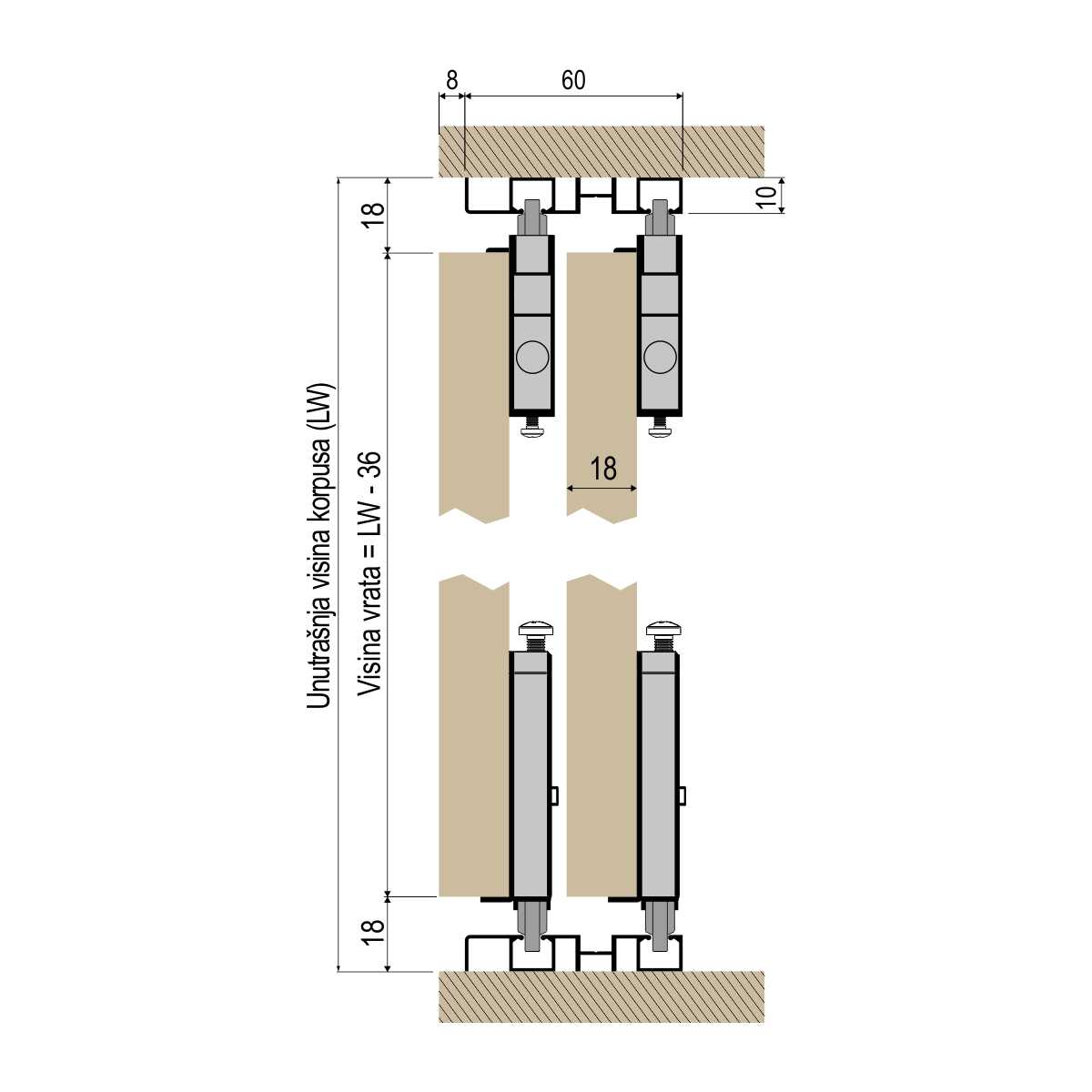 Aluminijumska dvokanalna šina se koristi uz FST klizni mehanizam za izradu drvenih plakarksih vrata.