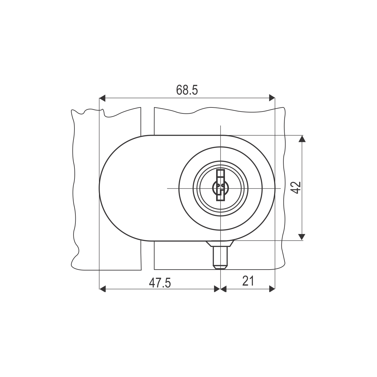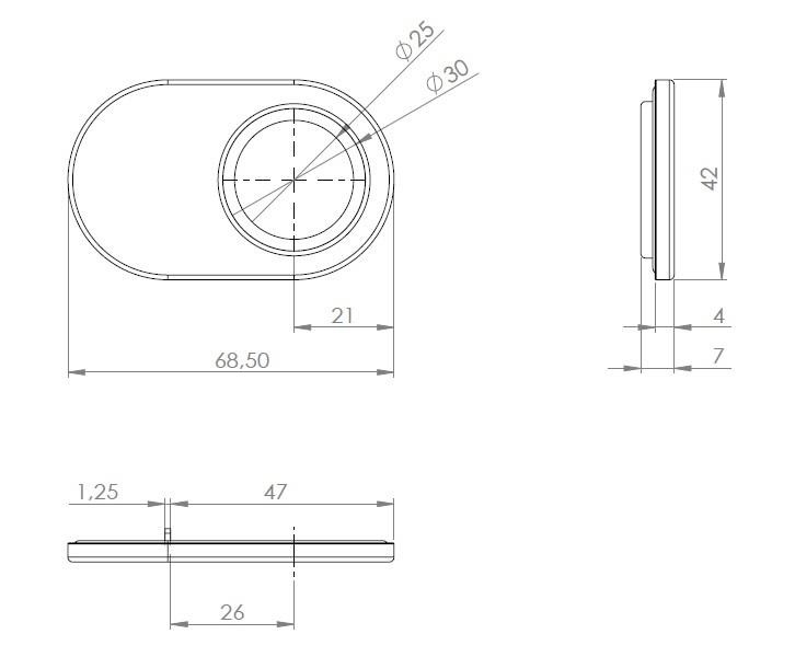 OB S prihvatnik se koristi uz bravicu X689 (š:6422) u slučaju kada je bravicu potrebno montirati na korpus sa dva staklena krila.