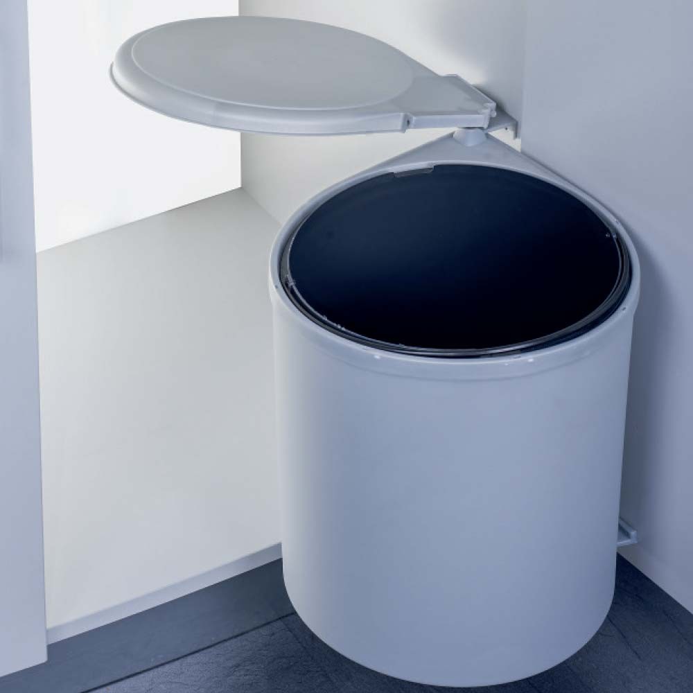 Kanta za sitni otpad automatski izlazi napolje pomoću mehanizma za povezivanje i istovremeno otvara svoj poklopac.
