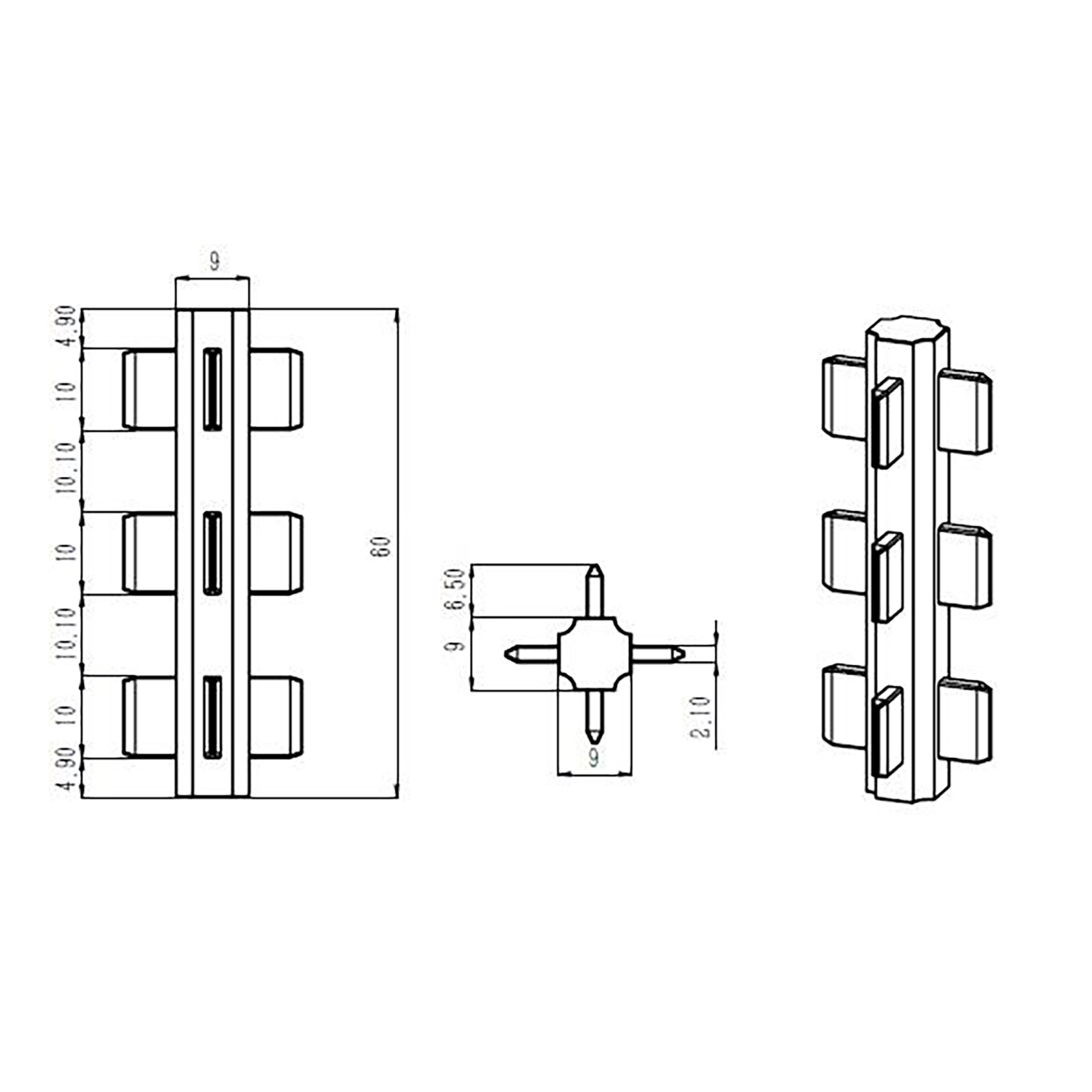 PVC ugao za pregrade unutrašnjosti fioke - 4 strane Četvorostrani PVC ugao se koristi prilikom izrade pregrada unutar fioka uz profil 60mm visine. Materijal: PVC/Tekstil Boja: Siva *Cena se odnosi na komad artikla
