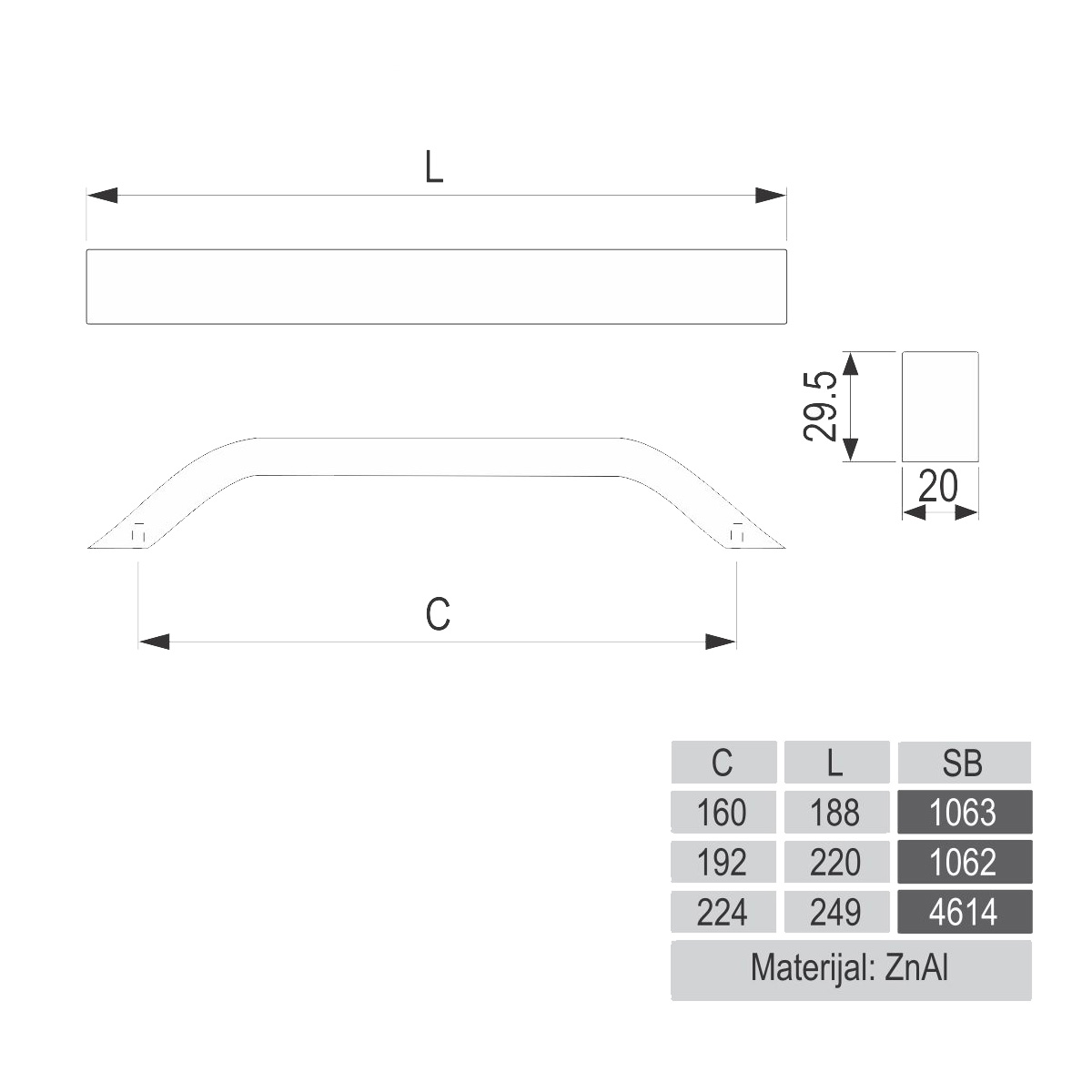 Razmak rupa za šraf/dimenzija ručice: 224/249mm